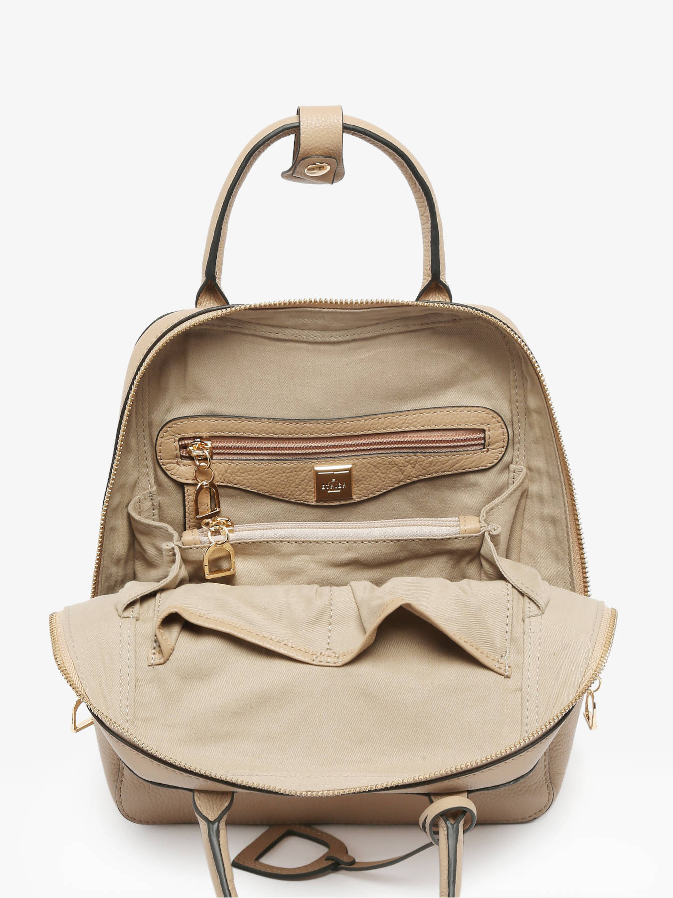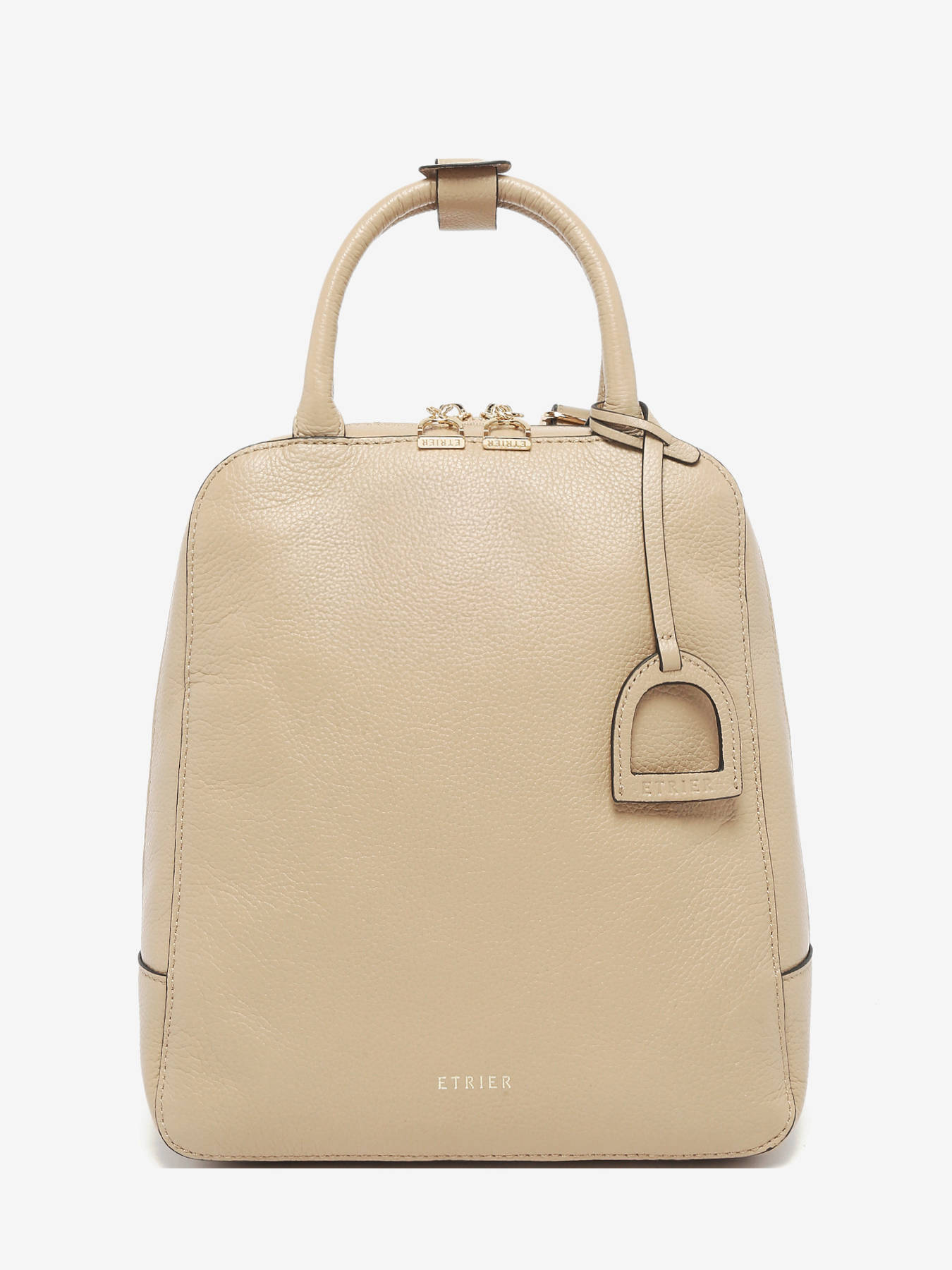 The ETRIER backpack from the TRADITION line, a hallmark of the brand, features timeless grained leather and a design that is both minimalist and elegant, highlighted by a stirrup-shaped detail. This spacious model offers a large main compartment, along with two simple pockets and two zippered pockets for optimal organization.