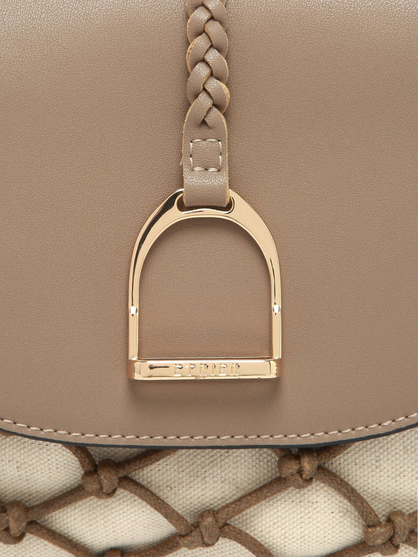 The SAHARA crossbody bag by ETRIER reinterprets the mesh bag in a chic and contemporary version. The combination of leather and cotton rope creates an elegant play of textures and transparency, evoking wide-open spaces and a free-spirited vibe. Designed with a lined mesh, it offers both lightness and everyday practicality. Its zip closure is complemented by a flap adorned with a braid and an ETRIER charm, adding a refined and distinctive touch. The adjustable and removable shoulder strap allows for comfortable and versatile wear according to your preference. Inside, two patch pockets and a zip pocket ensure organized storage of your essentials, combining style and functionality.
