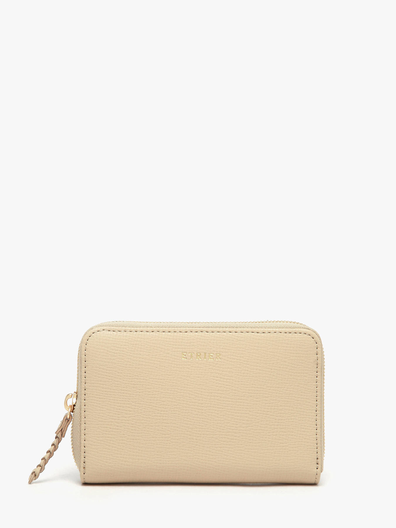 The TORSADE wallet by Etrier is crafted from textured cowhide leather, enhanced by an elegant braided detail that defines this refined line. Its zip closure ensures optimal security for your belongings. Inside, you'll find one slip pocket, six card slots, and a zipped pocket, perfect for organizing your daily essentials. RFID and NFC protection shields your data from electronic theft. For added convenience, a side ring lets you attach a strap for versatile carrying options. This wallet perfectly blends style and functionality, ideal for those seeking a chic, durable accessory tailored to their needs. The Torsade line embodies modern and timeless elegance, both understated and distinguished.